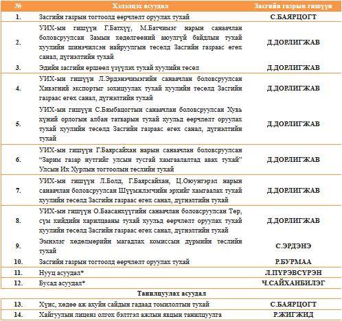 Өнөөдөр Засгийн газрын ээлжит хуралдаан болно. Тус хуралдаанаар Хууль зүйн сайд Д.Дорлигжав Эдийн засгийн өршөөл үзүүлэх тухай хуулийн төслийг танилцуулахаар болсон байна. Уг хуулийн төслийг Засгийн газар эцэслэн хэлэлцэж байж УИХ-д өргөн барих юм. Мөн өнөөдрийн хуралдаанаар Уул уурхайн сайд Р.Жигжид Хайгуулын лиценз олгох, бэлтгэх ажлын явцын танилцуулгыг хийх юм.