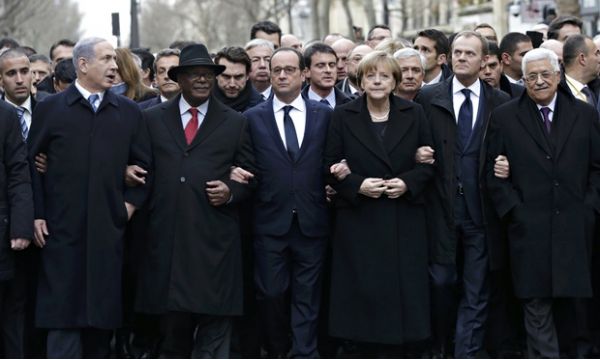Жагсаалын тэргүүнд Францын ерөнхийлөгч Франсуа Олланд, Германы меркель Ангела Меркель, Израилийн ерөнхий сайд Бенжамен Нятаняху, Палестинийн ерөнхийлөгч Махмуд Аббас, Малийн ерөнхийлөгч Ибрам Кэйта тэргүүтэй олон арван төрийн тэргүүд дуу хоолойгоо нэгтгэжээ. Тэд мөн амиа алдагсдын ар гэрийнхэнд гүн эмгэнэл илэрхийлсэн байна.