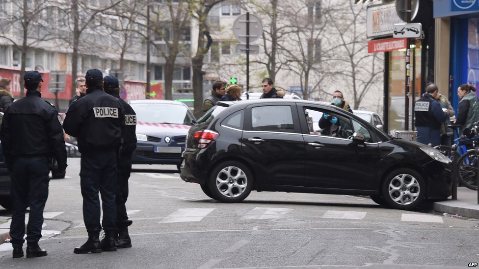 Ингээд Парисын цагдаагийн газар бүхэлдээ хөдөлгөөнд орж, гудамж талбай бүрт буутай эргүүлүүд алан хядагчдыг эрэн хайх ажиллагааг эхлүүлсэн байна. Хар өнгийн машин давхисаар Байлевард Ричард Лениорын өргөн чөлөөгөөр давхин хойд хурдны зам руу чиглэжээ. Замын аюулгүй байдлын камерт үлдсэн нэгэн бичлэгт машин хурдтай давхиж яваад хэсэг зогсов. Машины замыг таглан цагдаагийн офицер Ахмед Мерабат алан хядагчдыг отож байжээ.