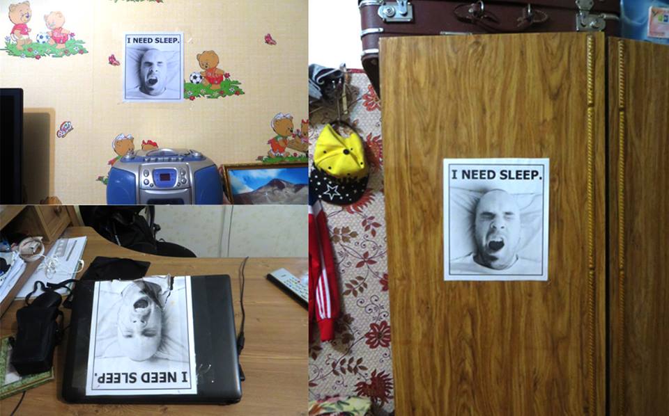 Эрт унтаж сурахын тулд ийм анхааруулгыг өрөөнийхөө хэд хэдэн газар өлгөжээ.