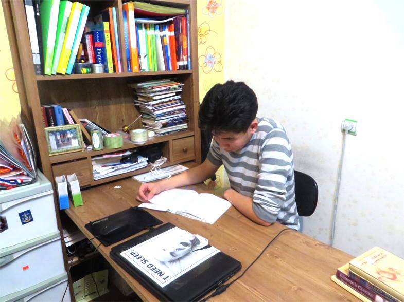 Энэ бол түүний бичгийн ширээ. Өрөөндөө түүнийг ийнхүү хичээлээ хийж байхад хэн ч саад болдоггүй. Тийм болохоор төвлөрч юм хийхдээ их сайн гэсэн.