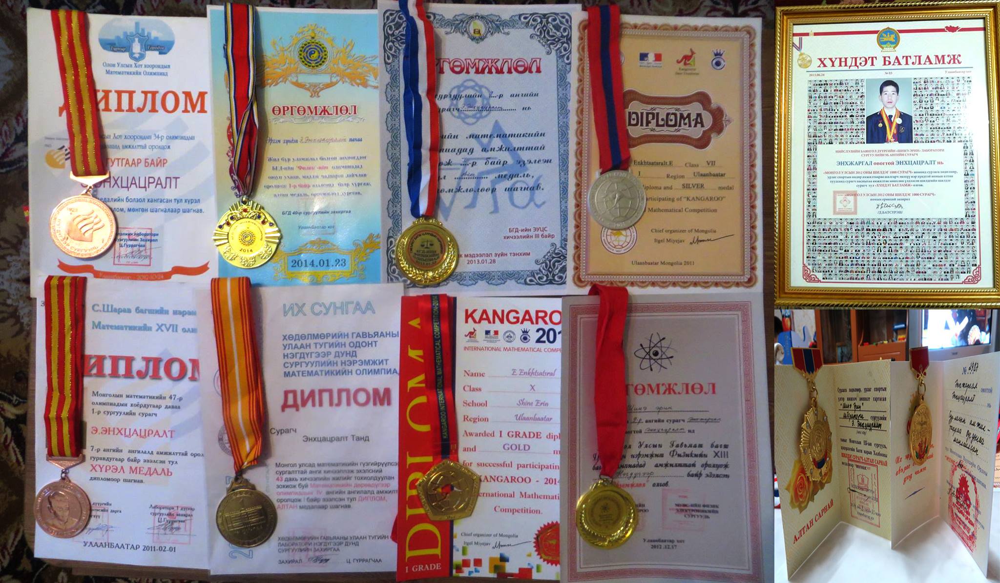 11 жил онц сурч байгаа Э.Энхцацралтын олон төрлийн олимпиадаас авсан шагналуудын өчүүхэн хэсэг нь энэ. Үүний цаана бүтэн хавтас дүүрэн өргөмжлөл, диплом, медалиуд бий.