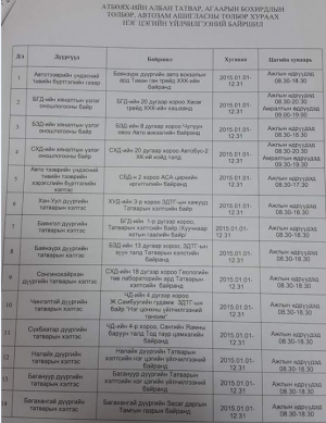 Захирамжийн дагуу нэг, хоёрдугаар сард оношилгоонд орох байсан 1, 2, 6, 7-ын цифрээр төгссөн улсын дугаартай машинууд энэ сарын үлдсэн хоногууд болон гуравдугаар сардаа багтаж оношлогоонд хамрагдах ёстой аж. Авто тээврийн болон өөрөө явагч хэрэгслийн албан татвар, агаарын бохирдлын төлбөр, автозам ашигласны төлбөр хураах нэг цэгийн үйлчилгээний байршлын мэдээллийн хүргэж байна.