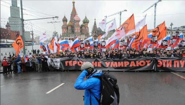 Юутай ч Оросын улстөрийн томоохон сөрөг хүчний нэг, боловсрол өндөртэй байсан Борис Немцовыг дэмжигч 10 мянга гаруй иргэд Москвагийн төв талбайд жагсан эсэргүүцлээ илэрхийлж байна.