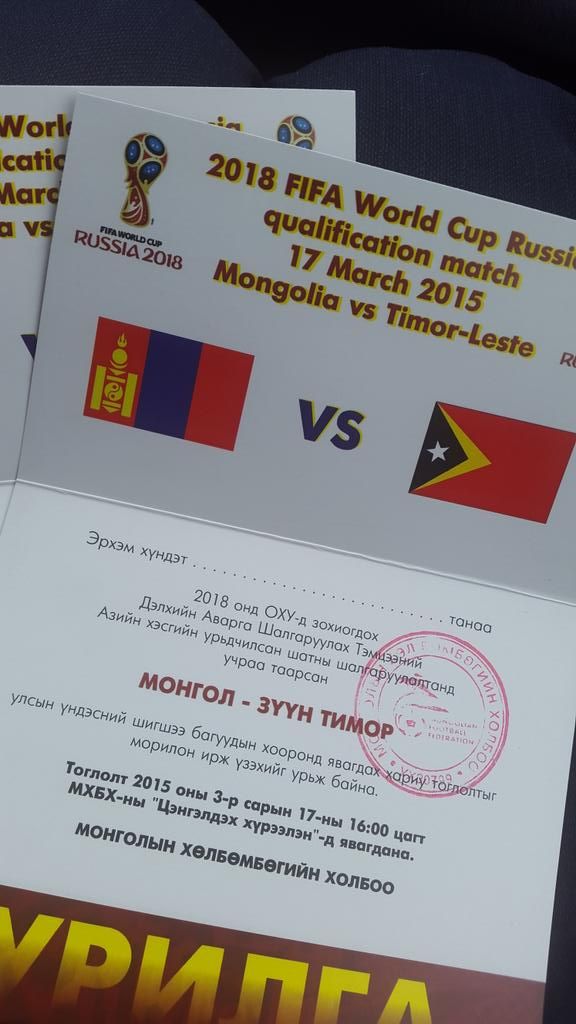 Хөл бөмбөгийн дэлхийн аваргын урьдчилсан шатны тоглолтод манай улсын шигшээ баг Зүүн Тиморын багтай таарсан. Эхний тоглолтод манай баг 4:1-ийн харьцаатай хожигдлоо. Тоглолтын 90 минутийн турш манай баг нэг гоол оруулсан бөгөөд нэмэлт цаг сунгаагүйгээр энэ удаагийн тоглолт өндөрлөсөн юм.