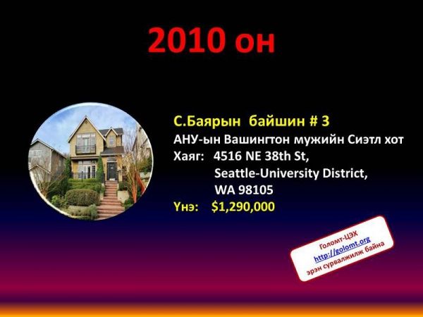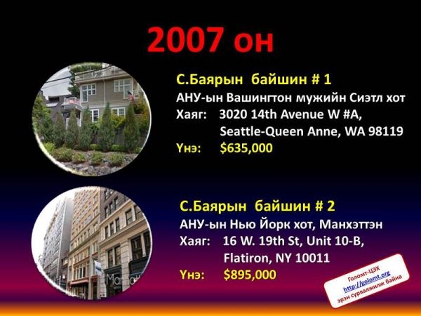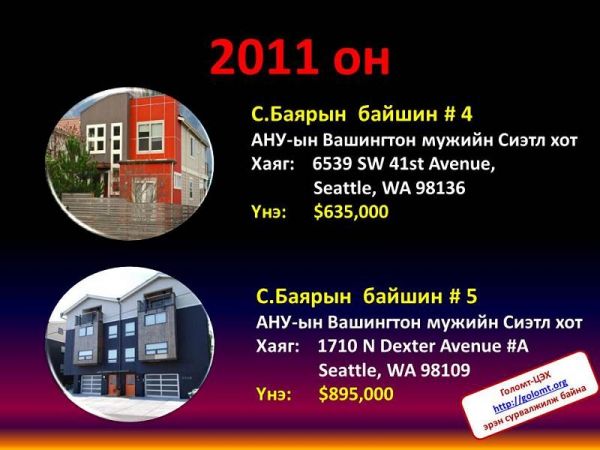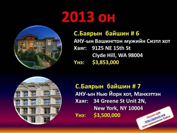 С.Баярын хилийн чанад дахь 11,7 сая долларын 7 байшинг илчиллээ