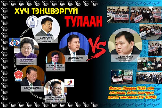 “Монгол шуудан” ТӨХК-ийн гүйцэтгэх захирлаар хууль бусаар томилогдоод буй түүний ард Засгийн газрын Хэрэг эрхлэх газрын дарга С.Баярцогт, Төрийн өмчийн хорооны даргын үүрэг гүйцэтгэгч Ш.Солонго, УИХ-ын гишүүн Д.Тэрбишдагва, Мэдээллийн технологи, шуудан, харилцаа холбооны газрын дарга Ц.Жадамбаа нар байгаа аж. Дээр нь өмнө нь “Монгол шуудан” ТӨХК-ийн дэд захирал Г.Оюунбат байгаа гэнэ. Харин эсрэг талд нь шууданчид, “Монгол шуудан” ТӨХК-ийн гүйцэтгэх захирал Ц.Батсайхан арай ядан эсэргүүцэн зогссон хүч тэнцвэргүй тулаан өрнөж байна.