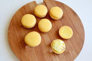 Нэг жигнэмэг дээрээ хөргөсөн амттанаа хийгээд дээрэс нь нөгөө жигнэмэгээ тавьж өгнө. Амттанаа битний хайрлаарай бага зэрэг гадуураа урсаж байх ёстой шүү.
