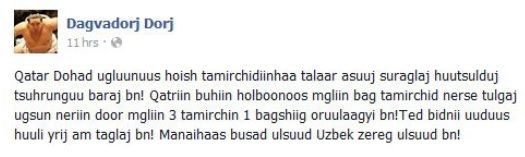 Маргааш чөлөөт бөхийн Ази тивийн аварга шалгаруулах тэмцээн эхлэх гэж байгаа. Гэтэл тус тэмцээнийг зорьсон манай улсын гурван тамирчин Дубайн онгоцны буудлаас нутаг буцсан талаар мэдээлэл байгаа. Энэ талаар Монголын Чөлөөт бөхийн холбооны ерөнхийлөгч Д.Дагвадорж цахим хуудаснаа "Катарын Дохад" өглөөнөөс хойш тамирчдынхаа талаар асууж, сураглаж, хөөцөлдөж, цөхрөнгөө барж байна. Катарын бөхийн холбооноос Монголын баг тамирчид нэрсээ тулгаж өгсөн нэрийн доор Монголын гурван тамирчин, нэг багшийн нэрийг оруулаагүй байна. Тэд бидний өөдөөс хууль ярьж ам таглаж байна. Манайхаас бусад Узбьек зэрэг улсууд байна" хэмээн жиргэсэн байна. Ингэснээр Монгол руу буцсан тамирчин маргааш эхлэх тэмцээнд орох боломжгүй болж байгаа бөгөөд бусад тамирчид хуваарийн дагуу тэмцээндээ оролцохоор болжээ.