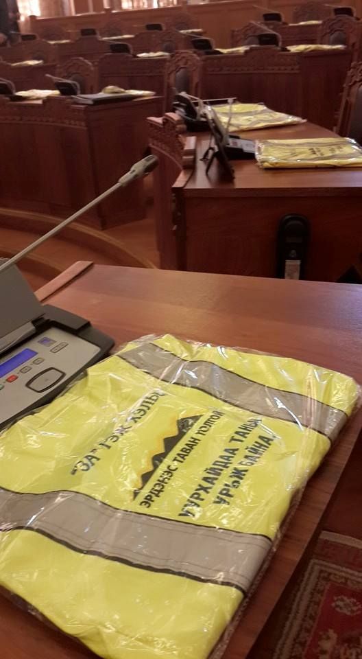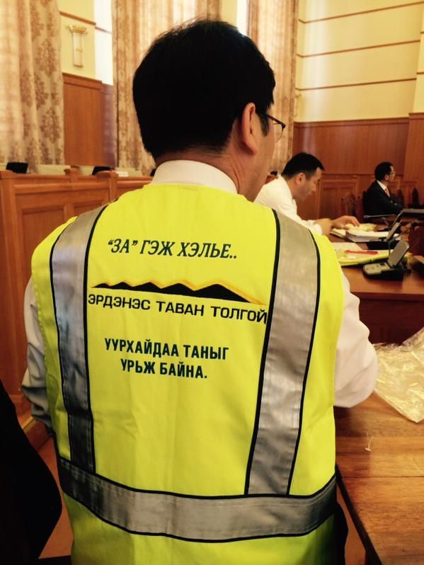 Тавантолгойн гэрээний асуудлаар УИХ-ын дэргэд ажлын хэсэг байгуулсан ч ямар нэг үр дүнд хүрээгүй байгаа билээ. Тиймээс УИХ-ын гишүүдийг Тавантолгойн гэрээг баталж, уг ордыг эдийн засгийн эргэлтэд оруулахыг уриалсан хантаазыг "Эрдэнэс Тавантолгой" компаниас тараажээ. УИХ-ын гишүүдийн чуулганы танхим дахь ширээ бүрт иймм хантааз тараасан бөгөөд УИХ-ын гишүүэн О.Баасанхүү тэдний уриалгыг дэмжин уг хантаазыг өмссөн байна.