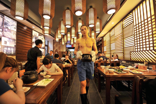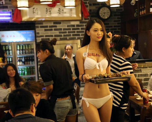 Хятадын зүүн хойд зүгийн Ляонин мужийн төв Шеньян хотын “Даосианжи” хэмээх зоогийн газар усны хувцастай тачаангуй зөөгчдөөрөө алдартай. Энэ рестораны эзэн үйлчлүүлэгчдэд усны хувцастай зөөгчдөөр хоол зөөлгөх маркетингийн арга хэрэглэснээр ресторанаа маш өндөр орлоготой болгож баяжсан нэгэн аж. Тэр одоо 30 зөөгчтэй бөгөөд үүний 20 нь эмэгтэй, 10 нь эрэгтэй. Өдөр бүр энэ зоогийн газарт усны хувцастай эмэгтэй зөөгч болон усны шорттой эрэгтэй зөөгчид үйлчилдэг ба анхандаа тэднийг харахаар ирдэг байсан бол сүүлдээ хоолных нь амтанд орж салахаа байсан аж. Хэдийгээр зарим хүмүүс “Залуу үйлчлүүлэгчдэд энэ ресторан буруу үлгэр дууриал үзүүлж байна. Хоол зарах ёстой болохоос усны хувцас сурталчилдаг газар” гэх зэргээр шүүмжилж байсан ч одоо уг ресторанаараа бахархдаг болсон байна.