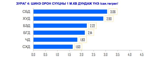 Тухайн сард зах зээлд нийлүүлсэн шинэ орон сууцны үнэ бага зэрэг буурсан, хуучин орон сууцны үнийн уналт эрчимтэй үргэлжилсэн хэвээр байгаа зэрэг нь орон сууцны дундаж үнэ сүүлийн саруудтай харьцуулахад огцом буурахад нөлөөлсөн гэж үзсэн байна.
