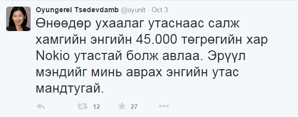 УИХ-ын гишүүн Ц.Оюунгэрэл цахим ертөнцийн идэвхитэй хэрэглэгч билээ. Тэрбээр эрүүл мэндээ бодож ухаалаг утаснаас салсан талаар өөрийн цахим хуудсаар дамжуулан мэдээллэсэн байна. Ухаалаг утсаа орхин 45 000 төгрөгний энгийнээс энгийн утас авснаа ч мөн дуулгаад авсан юм.