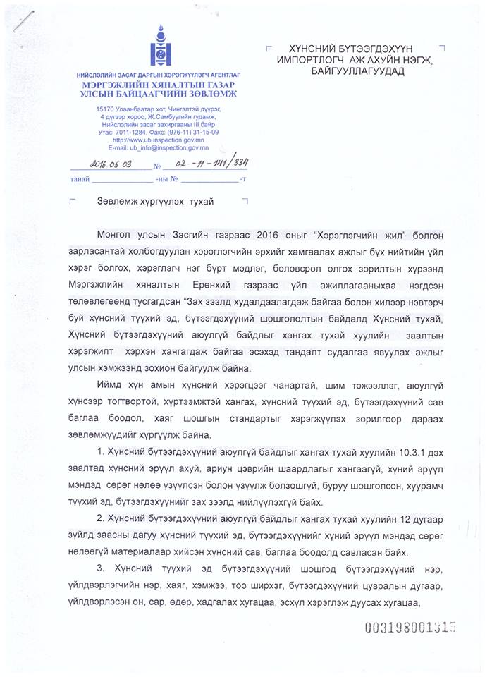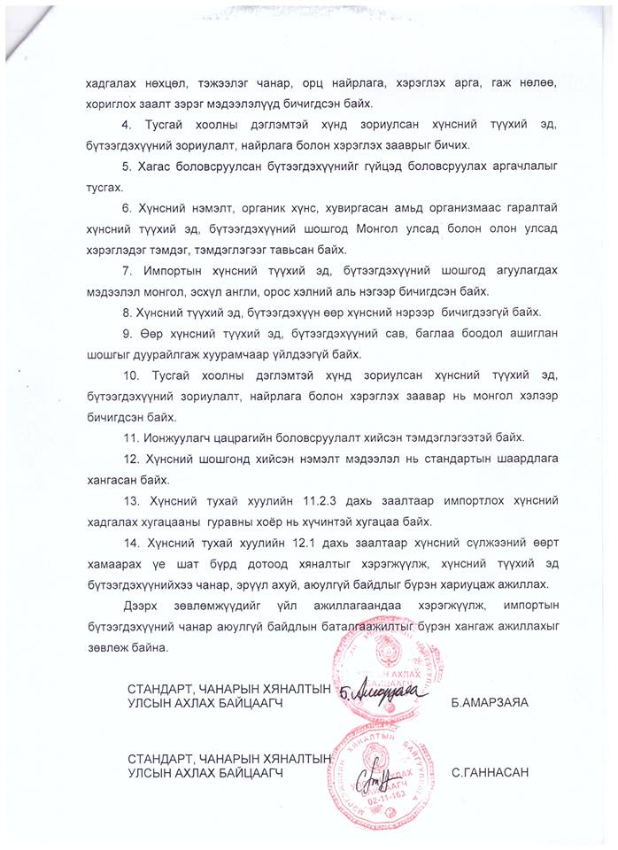 Хүн амын хүнсний хэрэгцээг чанартай, шим тэжээллэг, аюулгүй хүнсээр тогтвортой, хүртээмжтэй хангах, хүнсний түүхий эд, бүтээгдэхүүний сав баглаа боодол, хаяг шошгын стандартыг хэрэгжүүлэх зорилгоор дараах зөвлөмжүүдийг хүргүүлж байна.