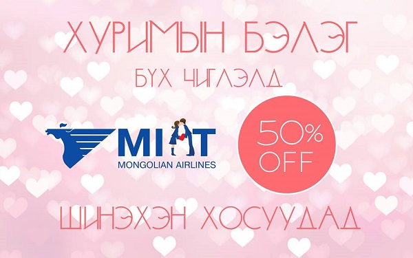 Хэрэв амжаагүй бол МИАТ компаниас шинээр гэр бүл болж байгаа нийт хосууддаа зориулан бүх чиглэлдээ 50% хөнгөлөлттэй үнээр үйлчилж эхэлснийг дуулгахад таатай байна. Тодруулбал 2016 оны 6-р сарын 1 нээс хойш гэр бүл болсон бүх хосууд энэхүү хөнгөлөлтөнд хамрагдах эрхтэй юм .