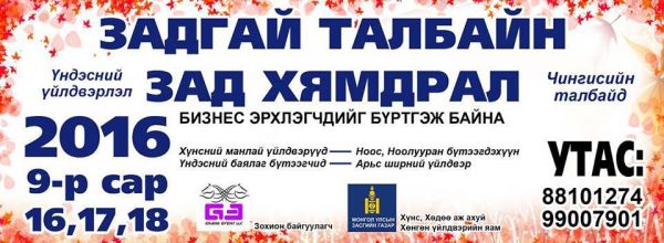 Монголын шилдгийн шилдэг үндэсний үйлдвэрлэгч нар нэгэн дор цуглах гэж байна. Хүнс Хөдөө Аж ахуйн яамны дэмжлэгтэйгээр "Grand event LLC" компани "Үндэсний үйлдвэрлэлээ дэмжье” үзэсгэлэн худалдааг эрхэм худалдан авагч таньд зориулж есдүгээр сарын 16,17,18-ны өдрүүдэд Сүхбаатарын талбайд зохион байгуулахаар болжээ. Та үзэсгэлэн худалдаанд ирснээр эх орныхоо байгалийн цэвэр бүтээгдэхүүнүүд болон чанартай, чамин хийц бүхий ноос ноолууран хувцасыг үйлдвэрийн болон 80 хүртэлх хувийн хямдралтайгаар худалдан авах алтан боломжийн эзэн болох юм. Үзэсгэлэн худалдаа ердөө гуравхан хоног үргэлжилэх тул та боломжийг бүү алдаарай. Мөн бизнес эрхлэгчдийг бүртгэж байна.