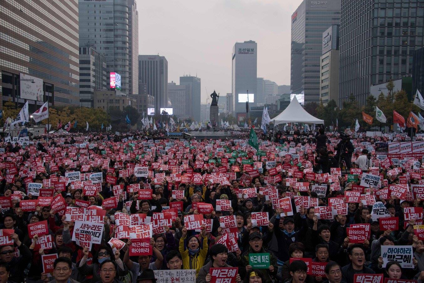 Өнгөрөгч бямба гаригт/2016.11.05/ Өмнөд Солонгос улсын хэдэн арван мянган иргэд Сөүл хотноо Ерөнхийлөгч Пак Гын Хе огцорхыг шаардлаа. Энэхүү жагсаалыг иргэд өдөр бүр хийнэ гэж мэдэгдэж байснаас хойш хэдийнээ долоо хоног өргөрчээ. Жагсаал улам ширүүсч байгаа талаар “channelnewsasia”-аас мэдээллэж байна.