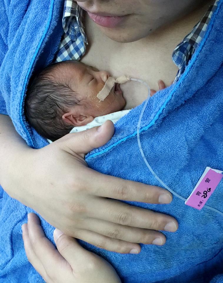 Тус эмчилгээнд 1.5 кг-аас бага жинтэй хүүхдүүдийг хамруулдаг бөгөөд аав нь хоёр цагийн турш хүүхдээ элгэндээ тэвэрдэг байна. Нанжиний эмнэлгийн тухайд энэхүү эмчилгээний аргыг эхний жилдээ ийнхүү хэрэгжүүлж байгаа бөгөөд 10 аавыг хамруулжээ.