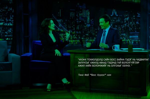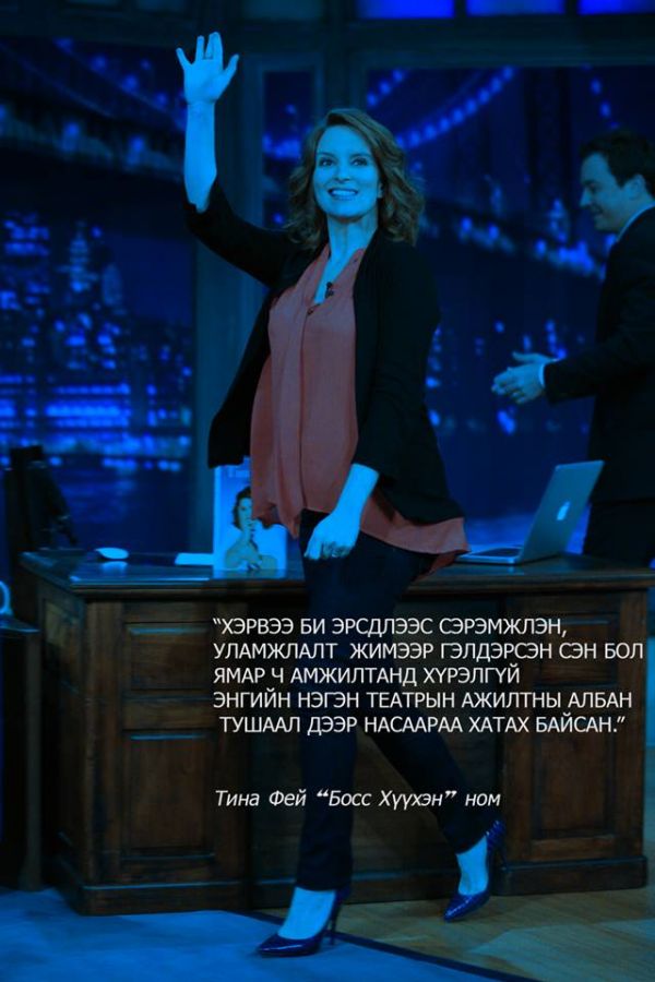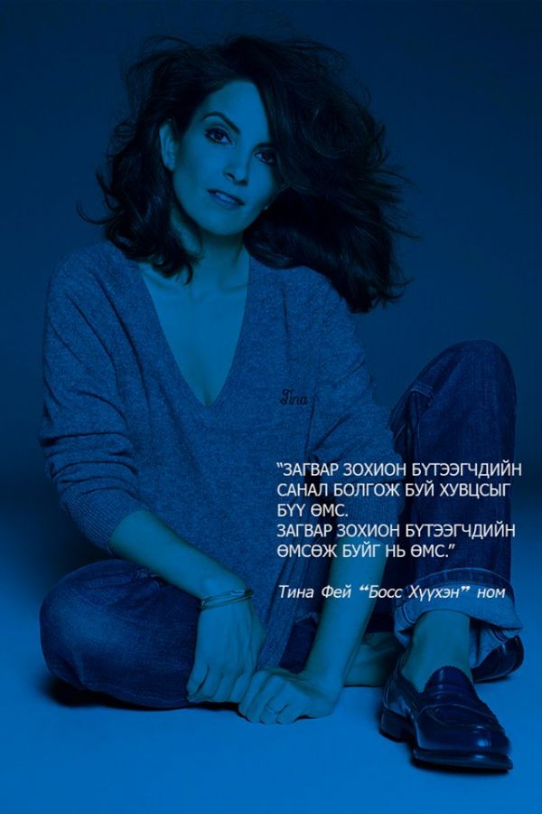 Дэлхий дахины “Биеэ даасан” бүсгүйчүүдийг өөрийн егөөдөл, өвөрмөц сэтгэлгээ, үнэтэй зөвлөгөөнүүдээрээ байлдан дагуулж буй комеди зохиолч, жүжигчин Тина Фейн “БОСС ХҮҮХЭН” номны хүчирхэг ишлэлүүдээс танд хүргэж байна. Үзэсгэлэнт жүжигчин бүсгүйн Тина Фей хэмээх алдар нь тайзны нэр бөгөөд түүний жинхэнэ нэрийг Элизабет Стаматина Фей гэдэг ажээ.