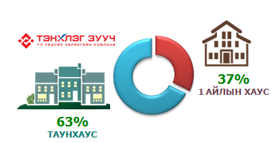 Хэрэгжиж буй нийт төслийн 63 хувь нь таунхаус, 37 хувь нэг айлын орон сууц байна.
