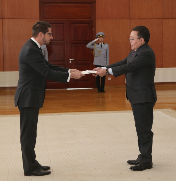 Монгол Улсын Ерөнхийлөгч Ц.Элбэгдоржид Бүгд Найрамдах Куба Улс /БНКУ/-аас Монгол Улсад суух Онц бөгөөд Бүрэн эрхт Элчин сайд Раул Дэлгадо Консепсион /2016.12.09/ Итгэмжлэх жуух бичиг барилаа.