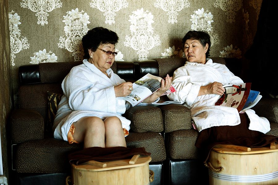 Нирвана салоны үүдээр оронгуут намуухан хөгжийн ая эгшиглэж, нар туссан саруулхан орчин биднийг угтсан юм. Өдрийн 12 цагийн орчимд аль хэдийн 6-7 орчим ахмад ирчихсэн үйлчлүүлж байв. Тэд хөгжмийн аянд алжаалаа тайлангаа цай оочин үйлчилгээний сайхныг өөр хоорондоо магтан сайшаан ярилцаж байлаа.
