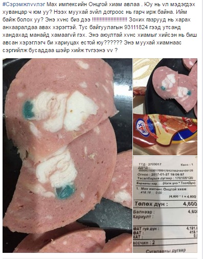 Эргэн сануулахад, одоогоос хэдэн жилийн өмнө иргэн Д-ийн худалдан авсан мөн л “Мах импекс” компанийн үйлдвэрлэсэн хиам муудсан байсан тул өөрийн цахим хуудаст/facebook/ энэ талаарх мэдээллийг тавьж олон нийтэд сэрэмжлүүлж байсан удаатай. Тэгвэл энэ үйлдэл “Мах импекс” компанид дахин давтагдлаа. Тус асуудлыг холбогдох газрууд нь харж анхааралдаа авахыг хүсье.