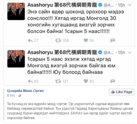 Хэдхэн хоногийн өмнө цахим орчноор Монгол Улсад визгүй зорчдог 42 улс дээр БНХАУ-ыг нэмлээ хэмээх мэдээллийг мэргэжлийн сумо бөхийн 68 дахь их аварга Д.Дагвадорж твиттер хуудаснаа бухимдлаа илэрхийлж жиргэснээр асуудал бүр хурцдаж ард түмэн ч бухимдлаа хувь хувьдаа илэрхийлж эхэлсэн.