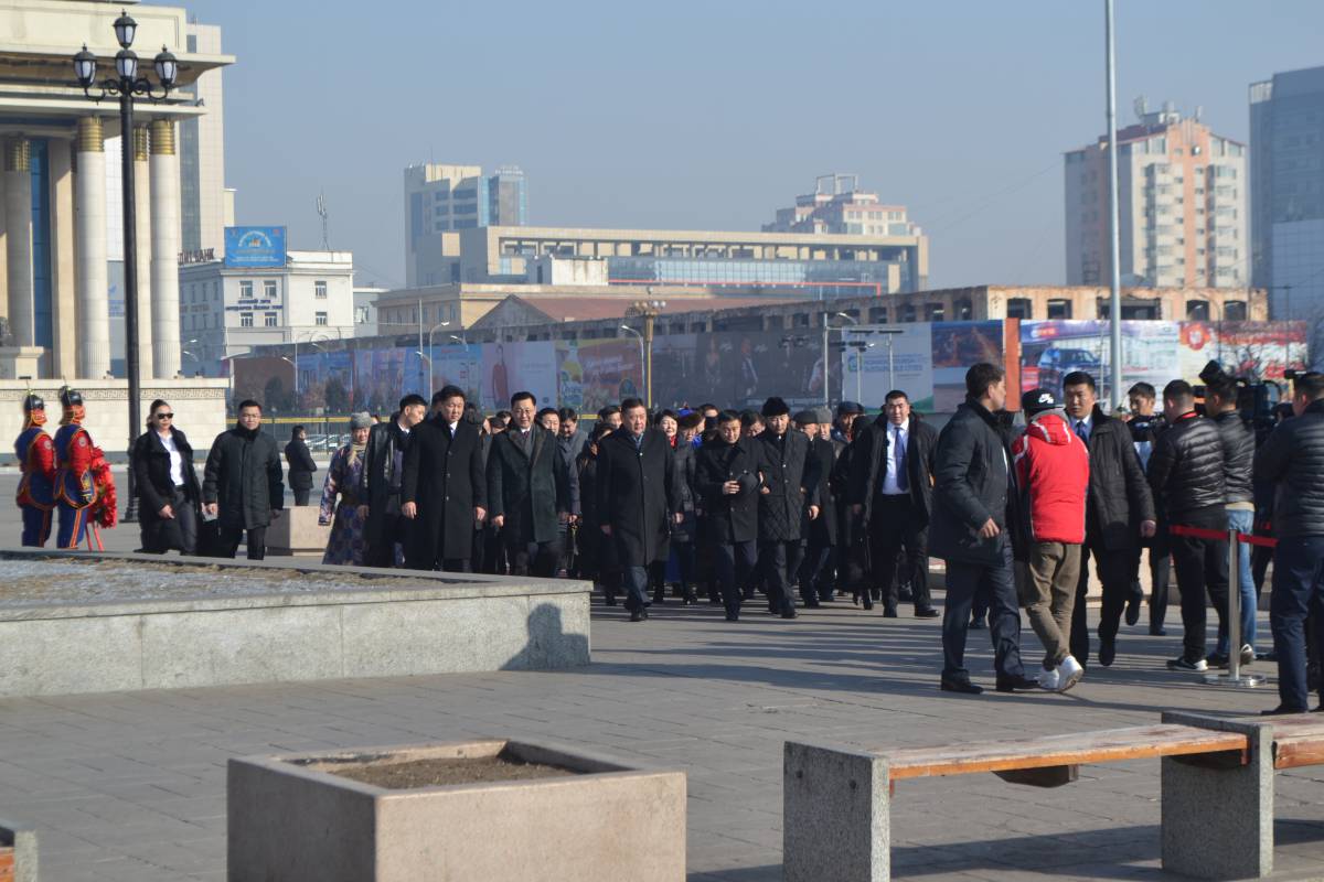 Энэхүү хүндэтгэлийн арга хэмжээнд УИХ-ын дарга, МАН-ын дарга М.Энхболд тэргүүтэй албаны хүмүүс, иргэдийн төлөөлөл оролцсон бөгөөд үргэлжлүүлэн Тусгаар тогтнолын ордоны Их танхимд баярын арга хэмжээ болж байна.