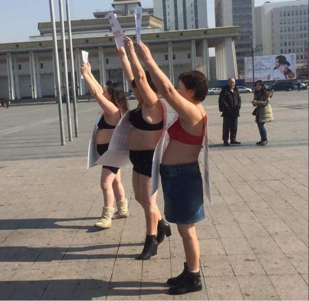 Олон Улсын эмэгтэйчүүдийн эрхийг хамгаалах өдрөөр гурван эмэгтэй төв талбай дээр оффшорчдыг эсэргүүцэж байгаагаа илэрхийлэн, бидэнд баярлах шалтгаан алга хэмээн хагас нүцгэн байдалтайгаар эсэргүүцлээ илэрхийлсэн.