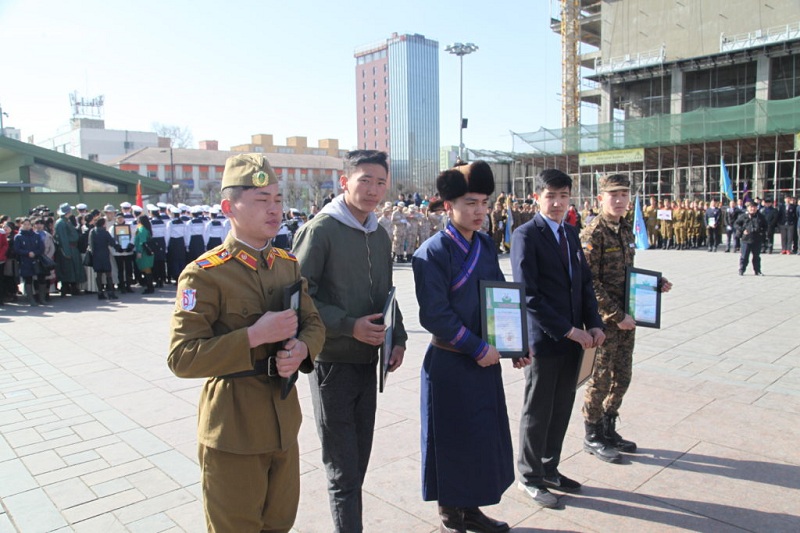 Мөн Монгол цэргийн өдөр, Зэвсэгт хүчний 96 жилийн ойн хүрээнд зарласан “Эрүүл ирээдүй-Эх орны цэрэг” сэдэвт зохион бичлэгийн уралдаанд 1 дүгээр байр эзэлсэн 72 дугаар сургуулийн 12в ангийн сурагч О.Балжинням, 2 дугаар байр эзэлсэн 50 дугаар сургуулийн 12д ангийн сурагч Г.Балсандорж, 3 дугаар байр эзэлсэн 57 дугаар сургуулийн 12 а ангийн сурагч Р.Биндэрьяа нарт шагналыг нь гардуулж өглөө гэж Чингэлтэй дүүргийн ЗДТГ-аас мэдээллээ.