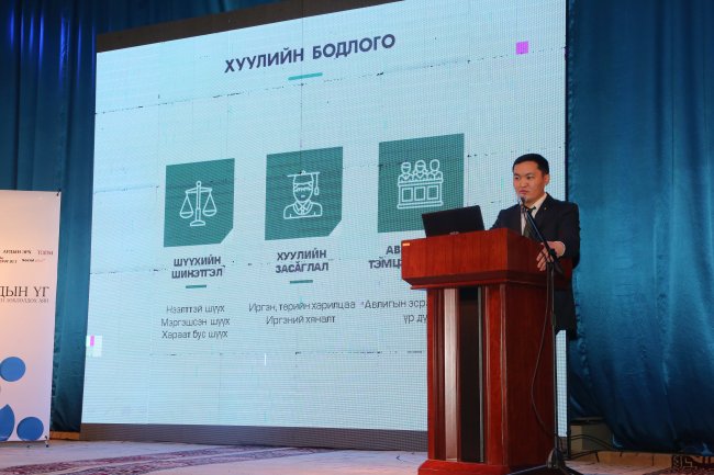 Зөвлөлдөх уулзалтын эхэнд Монгол Улсын Ерөнхийлөгчийн Хүний эрх, хуулийн бодлогын зөвлөх Ч.Өнөрбаяр илтгэл тавьсан юм. Тэрбээр илтгэлдээ "Шүүхийн шинэтгэлийг хийх нь нийгмийн захиалга гэж Ерөнхийлөгч үзсэн. Энэ шинэтгэлийн үр дүнд шүүхийн шинэтгэлийн багц хууль батлагдлаа. Монголын шүүх нээлттэй болж чадсан гэдгийг Германы Олон улсын хамтын ажиллагааны нийгэмлэгийн судлаачид дүгнэсэн. Тэд Монголын шүүх үүдээ бүрэн нээжээ гэж дүгнэсэн байна. Намайг оюутан байхад шүүхийн шийдвэртэй танилцаж өгүүлэл бичихийн тулд сургуулийнхаа захирлын гарын үсэгтэй хүсэлт авч, шүүхийн зөвшөөрлөөр архивт нь суудаг байсан. Харин шүүх нээлттэй болсноор Монгол Улсын шүүхийн гаргасан шийдвэрийг 3 сая хүн цахим сайтаас үзсэн. Шүүгчийн шийдвэр гэдэг бол хүний эрхийн баталгаа, шударга ёсны илэрхийлэл учраас ил тод болгох нь ач холбогдолтой. Шүүхийн цахим санд 275 мянган хэргийн шийдвэр орсон байна. Энэ шийдвэрийг байнга үздэг 14969 хүн байна. Өдөрт shuukh.mn сайтад 10 мянган хүн хандалт хийж байгаа статистик тоо гарсан. Энэ бол маш өндөр тоо” гэж онцоллоо.