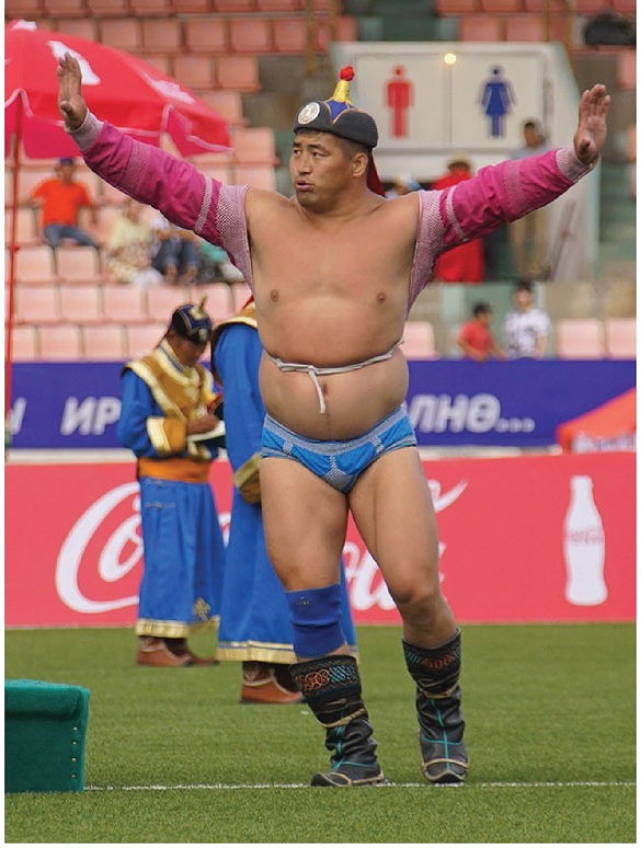 Шар өнгийн цамц, дээлийг монгол бөхийн өргөөнд тогтмол өмсдөг. Өөрийн сүсэг бишрэлтэй нь холбоотой юм болуу даа.