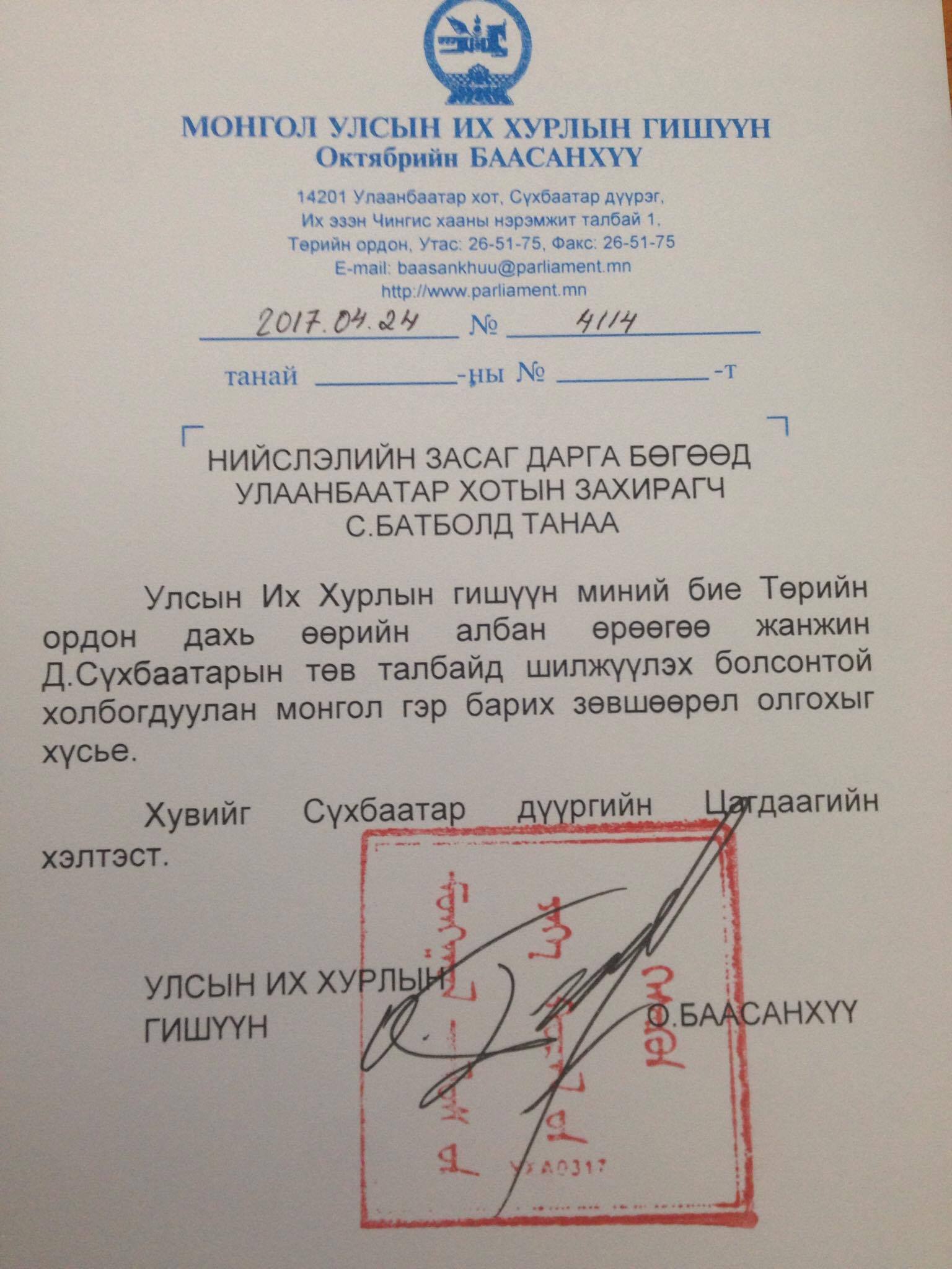 УИХ-ын гишүүн О.Баасанхүүг албан өрөөнөөс нь хөөсөн тухай бид өмнө нь мэдээлсэн билээ.