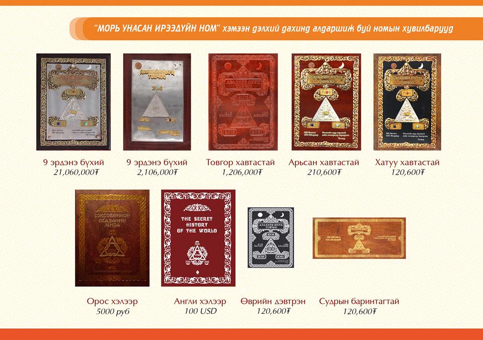 Тиймээ 9 эрдэнийн номоо Монгол улсад 21 ширхэгийг хэвлэн гаргана.Анхныхаа номыг Монгол улсын засгийн газрын тэргүүн Ерөнхий сайд Ж.Эрдэнэбатад өргөн барьсан. Харин тав дахь хэвлэлээ Монгол улсын тав дахь шинэ Ерөнхийлөгчид барих ба уг номонд Монгол Улсын тав дахь Ерөнхийлөгч хэн болох тухай бичсэн.
