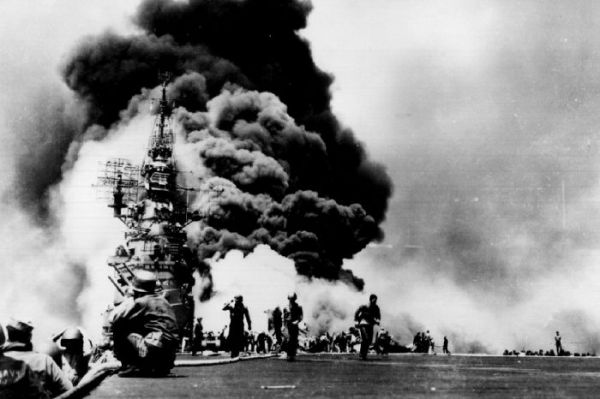• Америкийн "Intrepid" байлдааны хөлгийг камеказе нар устгахад 60 усан цэрэг нас баржээ.