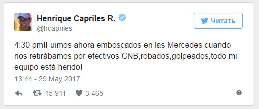 Миранда мужийн захирагч тэрбээр “Лас Мерседесд очиход бидэн рүү халдлаа. Боливарын үндэсний гвард бидэн рүү халдаж, дээрэмдэж, зодлоо. Манайхан бүгд шархадсан” гэж бичсэний доор олон хүн дургүйцлээ илэрхийлсэн байв.