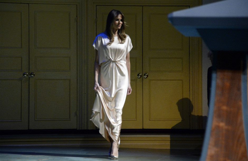 АНУ-ын Тэргүүн хатагтай Меланиа Трампын хувцаслалт үргэлж олны таашаалд нийцдэг. Загвар зохион бүтээгчид хүртэл түүнээс санаа авах нь бий. АНУ-ын Ерөнхийлөгч, тэргүүн хатагтай нарын хилийн чананад хийсэн анхны айлчлалаар Меланиа ёстой л байлдан дагуулсан.