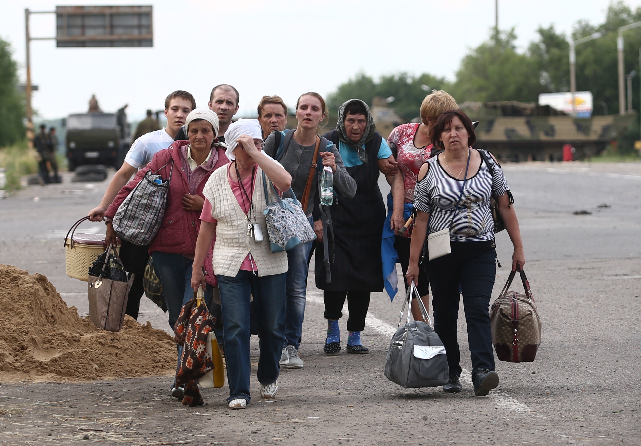Донецк, Донбасс, Луганск зэрэг муж бүр тусгаар улс болж байгаагаа зарласан. Эдгээр мужид байнга буудалцаан болж, энгийн иргэд амиа алдсаар байна. Мөн олон зуун хүн орон гэрээсээ дүрвэсэн билээ. Тэд ОХУ-д амьдарч байна.