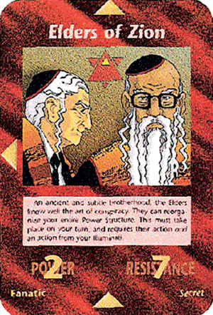 ”Сион хөгшид”. Дэлхийд шинэ дэг журмыг тогтоход гол үүрэг гүйцэтгэх нууцлаг еврей. Израиль улс хүчирхэг байгаад байдгийн шалтгаан нь дэлхийн баялгийг атгадаг 147 хүчирхэг эрхмийн дунд еврей хүмүүс олон байдагтай холбоотой байж магадгүй гэсэн таамаглал төрүүлнэ.