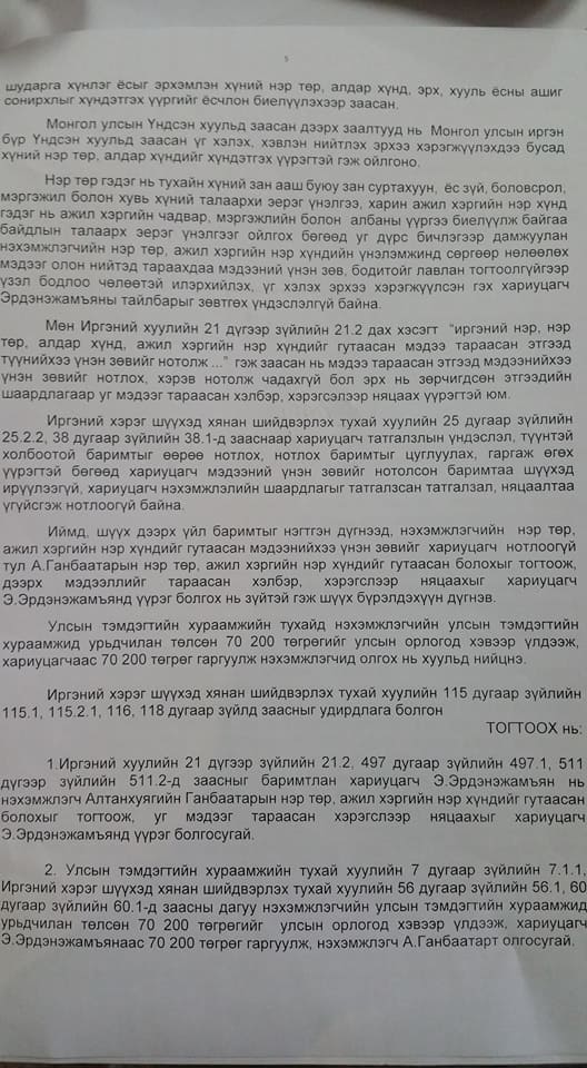 Ганбаатар гэгч, түүний хүслийг биелүүлсэн шүүгч нь хэтэвчээрээ холбоотой юм уу, сандан хамаатан, эсвэл намынхаа даалгавараар л ингэж байгаа байлгүй дээ.