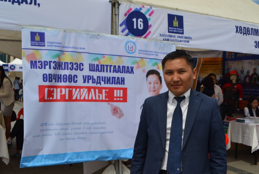 Өнөөдрийн өдөрлөгт Мэргэжлээс шалтгаалах өвчний эмч, албан хаагчид иргэдэд зөвлөгөө өгч байна. Ажлын байрны нөхцөлийн үнэлгээ гэж юу вэ, хөдөлмөрийн нөхцөлийн үнэлгээг яагаад хийх ёстой талаар мэдээлэл өгч байгаа. Мөн хор саармагжуулах бодисын нээлттэй худалдаа явагдаж байгаа. Хүмүүс өргөнөөр мэдээлэл авч байна" хэмээв.
