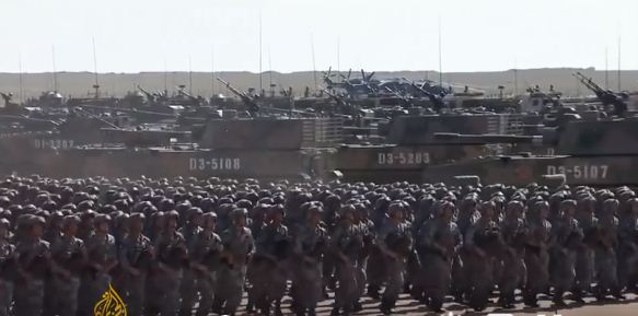Хятадын тэргүүн Си Жин Пин парадан дээр үг хэлэхдээ “Өнөөдөр бид хятад үндэстнийг сэргэн мандуулах зорилгодоо хамгийн их ойртоод байна. Хятад улс өөрийн зорилгодоо хүрч, аюулгүй байдлаа хангахын тулд түүхэндээ байгаагүй хамгийн хүчирхэг армийг байгуулах хэрэгтэй. Одоо манай улсад хүчирхэг арми урьд урьдынхаас илүү хэрэгтэй байна. Манай арми халдан довтолсон бүх дайсныг ялж, үндэсний тусгаар тогтнолоо хамгаалан улс орны аюулгүй байдал, хөгжлийг хангах бүрэн чадвартай" гэж мэдэгдлээ.