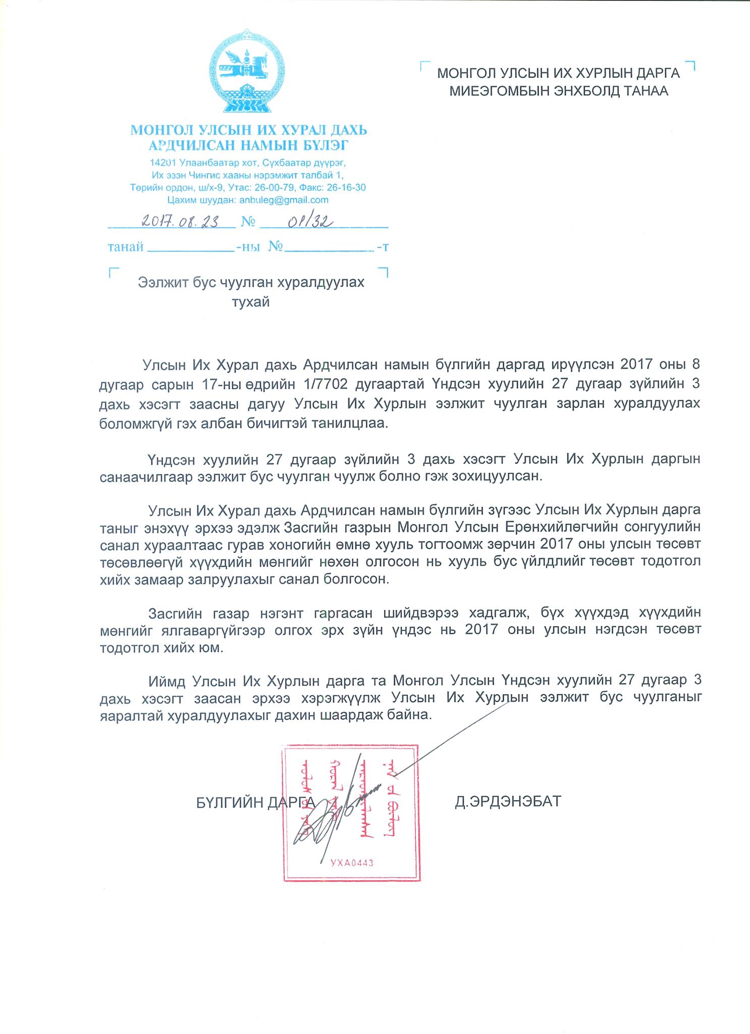 Түүнчлэн УИХ дахь Ардчилсан намын бүлэг хүүхдийн мөнгө олгох болон өвөлжилтийн бэлтгэл ажил хангахтай холбоотойгоор УИХ-ын ээлжит бусаар хуралдуулахыг УИХ-ын дарга болоод Ерөнхий сайд нараас дахин шаардаад байгаа билээ.