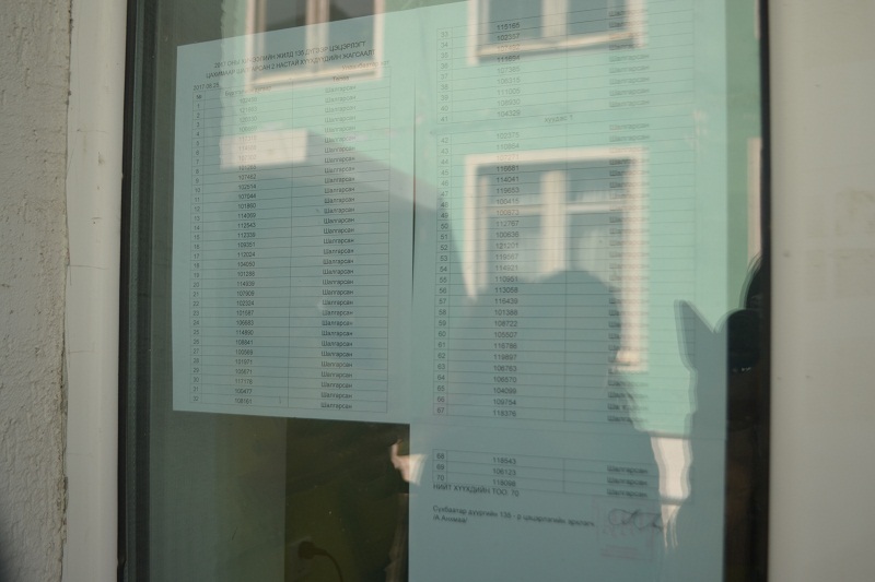 42-р цэцэрлэгийн хувьд байдал ийм байлаа. Бусад цэцэрлэгүүдийн хувьд сонгон шалгаруулалтад тэнцсэн хүүхдийн нэрсийг цэцэрлэгийн гадна нааж тавьсан байв. Зарим нэг цэцэрлэгт авах ёстой хүүхдийнх нь тооноос хоёр дахин хэтэрсэн хүүхдүүд бүртгүүлсэн байсан юм.