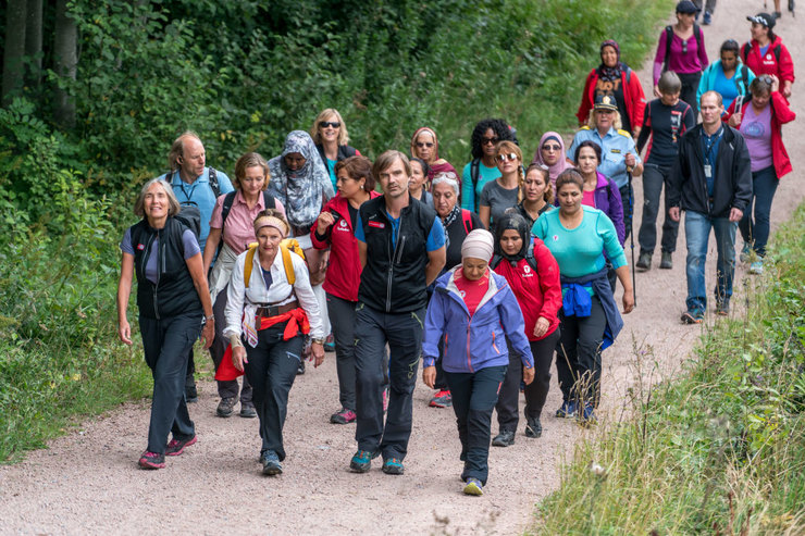 Зураг дээр хатан хаан бусад хүмүүсээс ялгагдахааргүй харагдаж байгаа юм. Тэрбээр хэрэгтэй эд зүйлсээ хийсэн цүнхийг өөрөө үүрэн явж, алхалтыг удаашруулалгүйгээр цагаач нартай хамт олон километрийг туулжээ.
