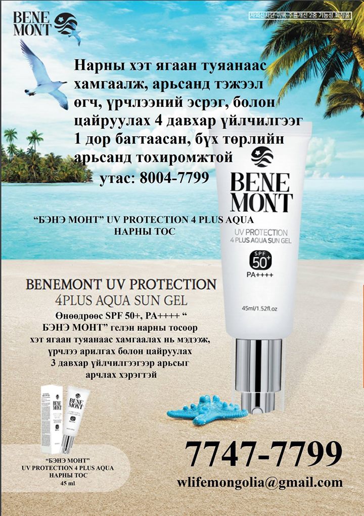 “BENEMONT” бүтээгдэхүүний маань нээлт Солонгос улсдаа өнгөрөгч дөрөвдүгээр сард болсон. Манай бүтээгдэхүүний онцлог 100 хувь ургамлын гаралтай, богино хугацаанд үр дүнгээ өгдөг учраас Солонгос бүсгүйчүүдийн хэрэглээ болон тааламжид хэдийнээ нийцсэн. Мөн арьсыг цайруулахаас гадна эрчимтэй өргөж V хэлбэрт оруулах ид шидтэй. BENEMONT нь арьс арчилгааны үндсэн дөрвөн төрлийн бүтээгдэхүүн юм. Тухайлбал, арьсыг 28 өдөр эрчимтэй өргөх ампуль, олон төрлийн пептидээр баялаг серум, нарын хэт ягаан туяанаас хамгаалах, үрчлээний эсрэг цайруулах үйлчилгээтэй нарны тос мөн хуурай үрлэн нүүр цэвэрлэгч. Эдгээр бүтээгдэхүүнүүд цэвэр ургамлын гаралтай үүдэл эс болон уургаар баялаг учир үйлчилгээ өндөр гэдгийг ам бардам хэлмээр байна. "Wonderful life" компани монголчуудтай илүү ойр дотно байж та бүхний гоо сайхан болон эрүүл мэндийн төлөө илүү хичээн ажиллах болно” гэлээ.