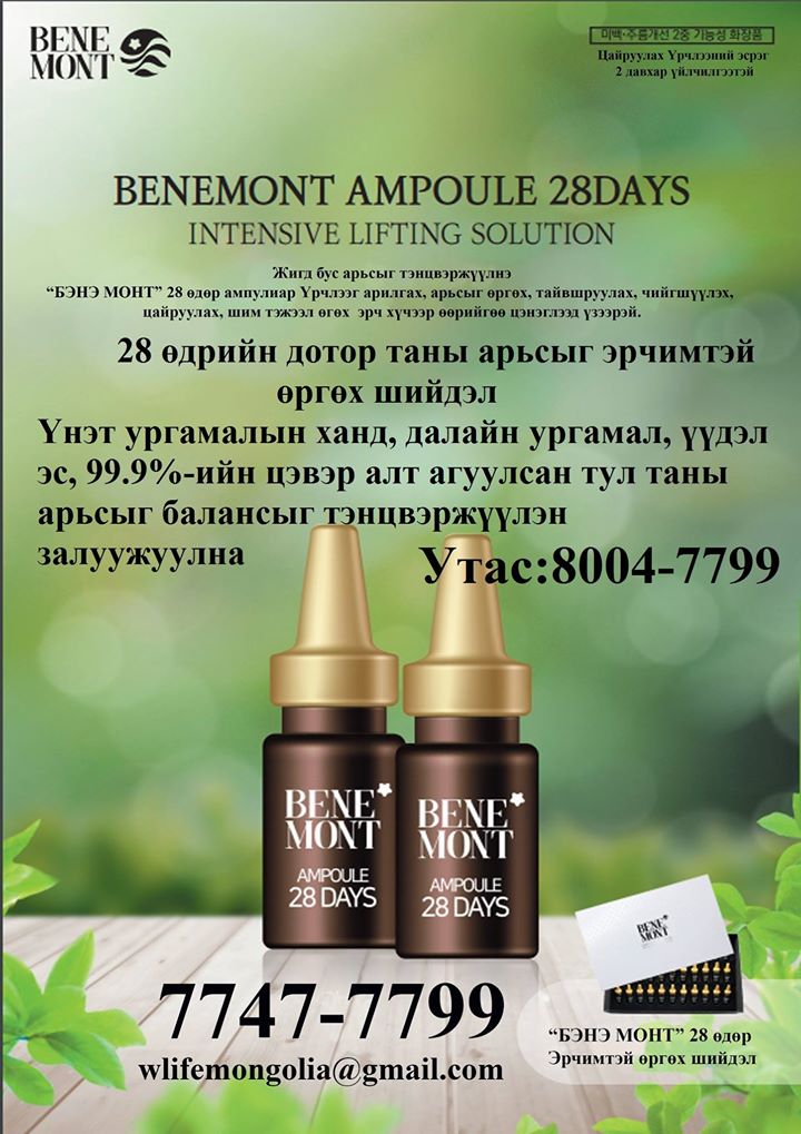 3. Гайхамшигт үр дүн бэлэглэх 28 өдрийн эрчимтэй өргөх шийдэл BeneMont ampoule
