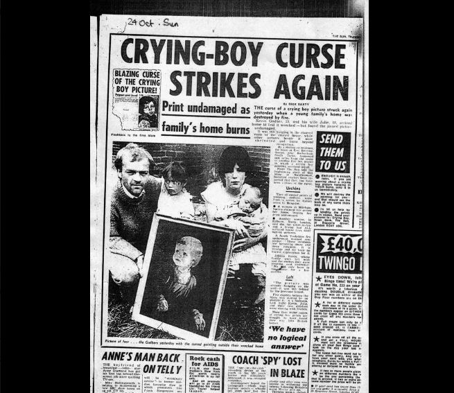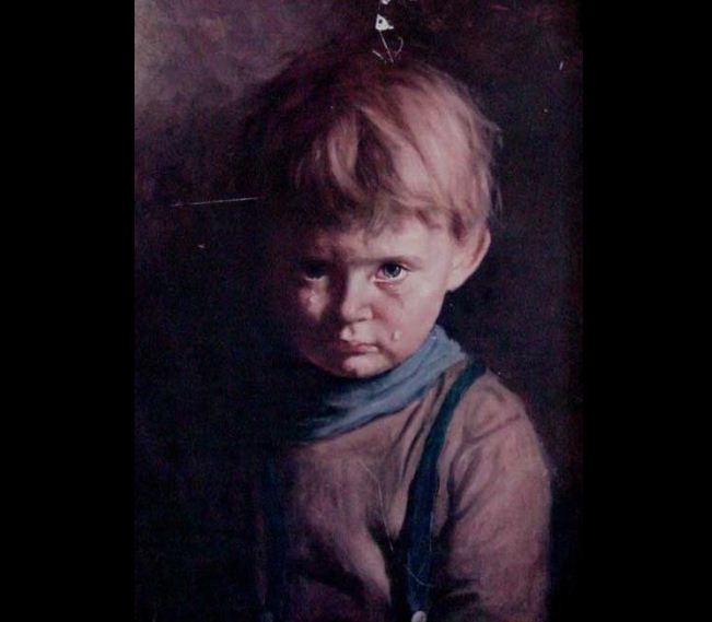 - Сандра Крекс энэ зургийг худалдаж аваад цөөн хонож байтал хадам эгч, найз хоёртойгоо галд өртөж сүйрэх дөхжээ. Энэ үед галан дунд уйлж буй хөвгүүний зураг огт шаталгүй ганхаж байхыг ажжээ.