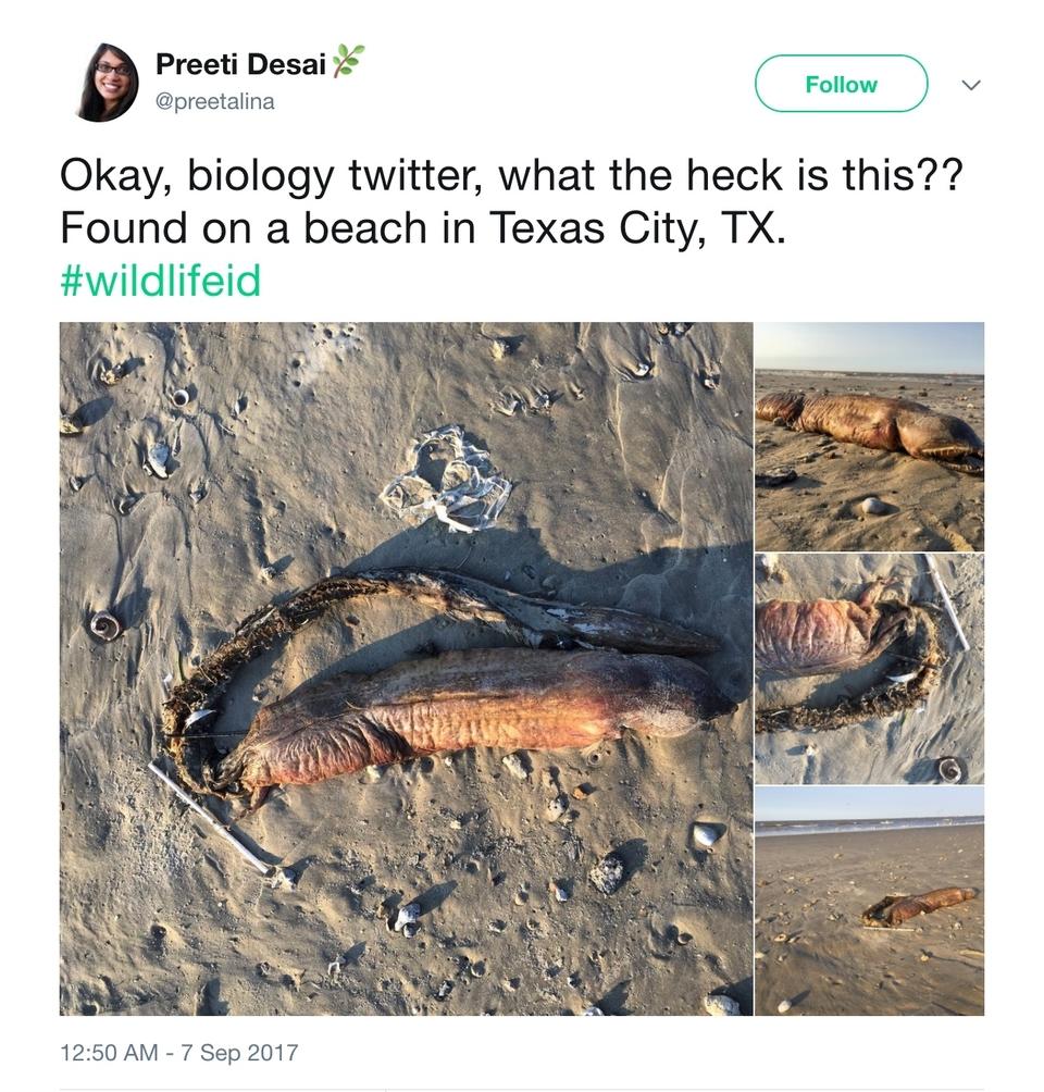 АНУ "Харви" хэмээх хар салхинд нэрвэгдэж, ихээхэн хохирол амсаад байгаа билээ. Тэгвэл хар салхи болсны дараа эх газар дээр хурц шүдтэй, нүдгүй загасны төрлийн амьтан шидэгдэн гарч ирсэн байна. Тус амьтны тухай мэдээллийг анх твиттер хуудсанд жиргэснээр хаанаас гаралтай ямар амьтан болох тухай хэлэлцүүлэг өрнөөд байгаа аж. Тухайлбал, тус амьтныг мутацид орсон гэж үзжээ. Харин зарим нь "Хөрөө шүдэт" загас бөгөөд 33-91 метрийн далайн гүнд болон давсархаг усанд амьдардаг амьтан гэсэн байна. Мөн Мексикийн булангийн эргийн дагуух далайн эргийн зүйл болох "Apladophis chauliodeodus" гэж нэрлэгддэг могой загас байж болох талтайг эрдэмтэд онцлоод байгаа аж.